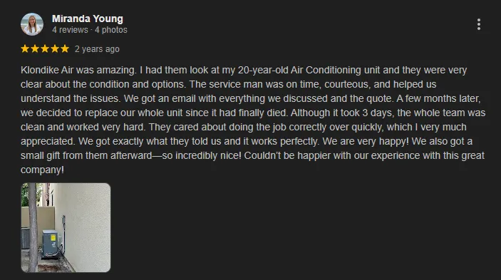 With thousands of satisfied customers, Klondike Air continues to deliver reliable heating and cooling solutions backed by 35+ years of trusted service.